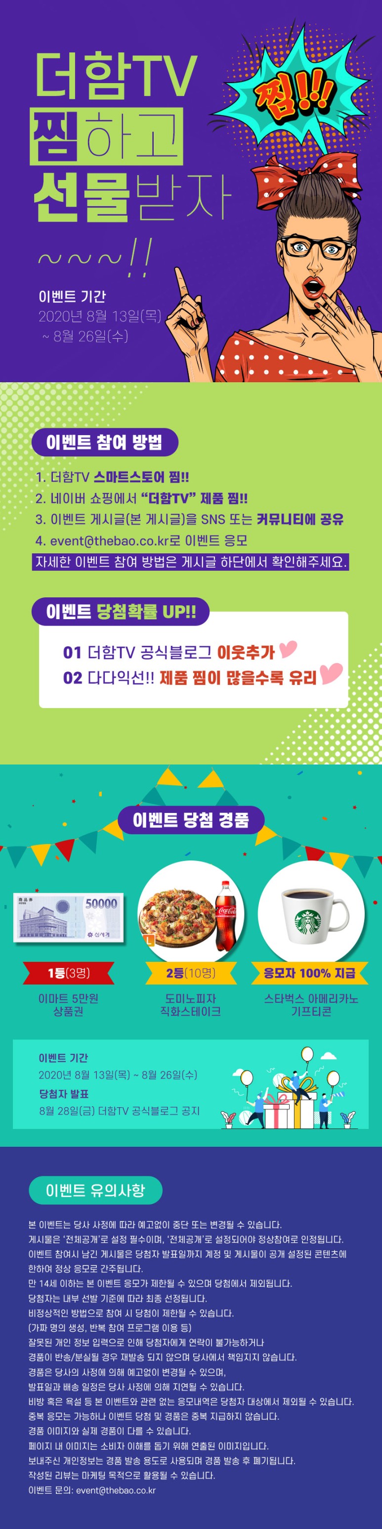 당첨자 발표 : 8월 28 (금) 더함TV 공식 블로그 공지