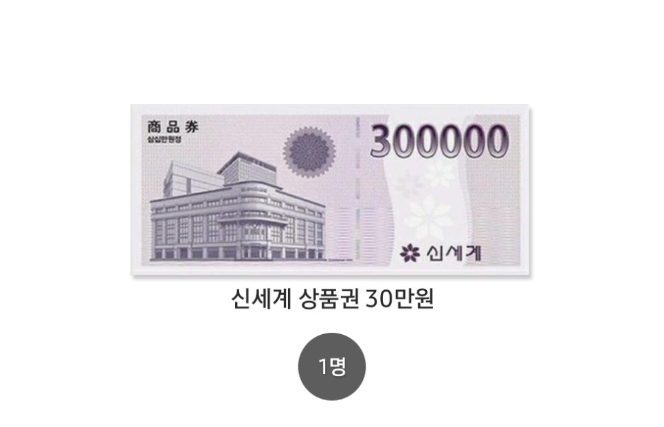 * 1등 상품의 신세계백화점 모바일 상품권 교환기간은 발행일로부터 30일이며, 교환한 지류권의 유효기간은 발행일로부터 5년입니다.