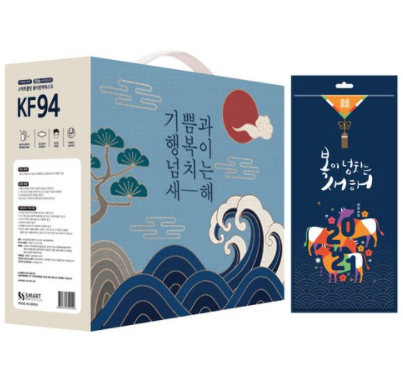 출처_쿠팡 스마트클린 새해 선물용 KF94 마스크 대형 50매입 개별포장