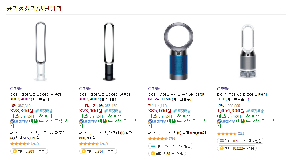 출처_쿠팡 다이슨 퓨어 휴미디파이 쿨 PH01